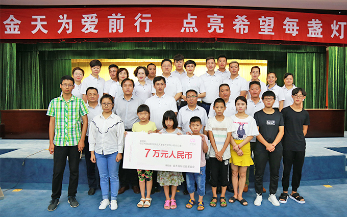 为全面落实金天国际护基金公益护苗计划,5月15日,为爱前行,点燃希望每盏灯暨金天国际夏津公益助学基金启动仪式……