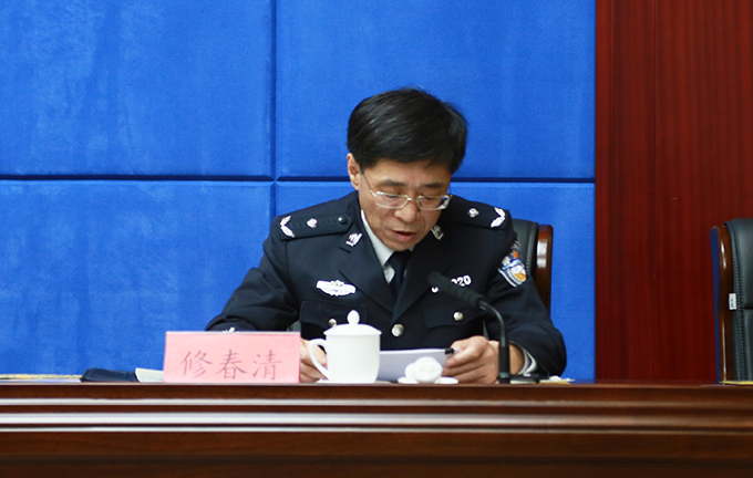 (山东省公安厅党委委员、政治部主任修春清主持会议)