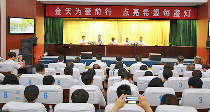 为持续践行企业社会责任,全面深化“公益护苗计划”,8月13日,“金天为爱前行,点亮希望每盏灯”之宿迁扶贫、助残关爱行活动成功举办。宿迁市晓店镇党委副书记、镇长张国华,农村工作局副局长、扶贫办主任蔡统云,金天国际集团副总裁、金天国际公益基金会理事长祖威,金天国际大中华区副总裁、金天国际公益基金会秘书长何军,金天国际公益基金会理事樊保宏,金天国际大中华区双创市场理事会领导,金天国际护基金成员,媒体及受助学生代表近100人参加了本次活动。