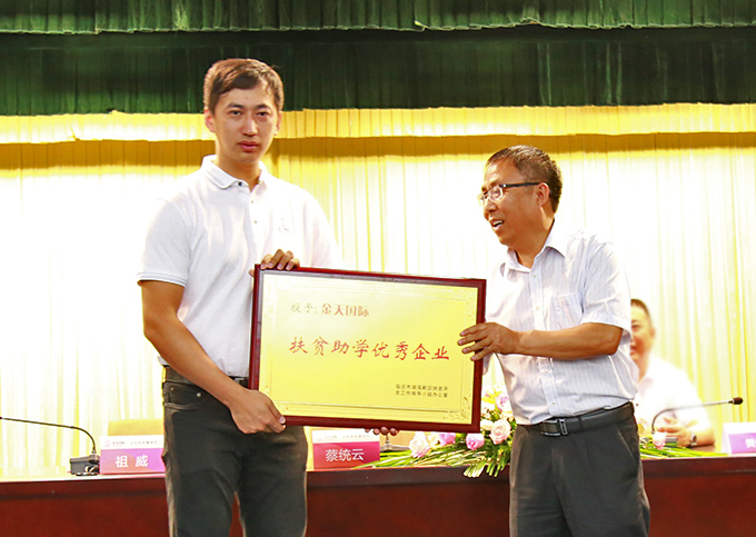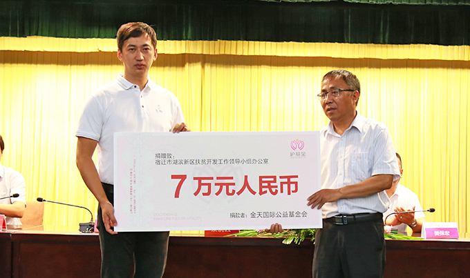 扶一株幼苗,蕴一份春光;助一名学童,展一片希望。仪式现场,金天国际集团副总裁、金天国际公益基金会理事长祖威代表金天国际护基金为宿迁市湖滨新区扶贫开发工作领导小组办公室捐赠善款。感怀企业爱心之举,宿迁市农村工作局副局长、扶贫办主任蔡统云向金天国际颁发荣誉证书。