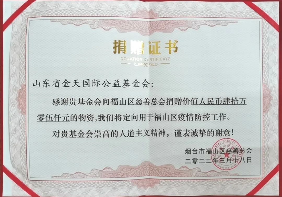 随着疫情防控进入关键期,高效灵活的防疫物资支持成为打赢全民“战疫”不可或缺的一部分。作为烟台福山区本土企业,为了切实履行社会责任,支持疫情防控工作,把疫情防控作为当前重要任务,金天国际积极对接新福山区慈善总会,了解防疫需求,结合雪莲养护贴在2020年初湖北抗击疫情起到的重要作用和宝贵经验,金天国际公益基金会于3月18日上午,向烟台市福山区慈善总会捐赠了价值人民币40.5万元的雪莲养护贴(男贴、女贴)产品和防护口罩,为奋战在一线的工作人员提供力所能及的帮助,助力抗击疫情。
